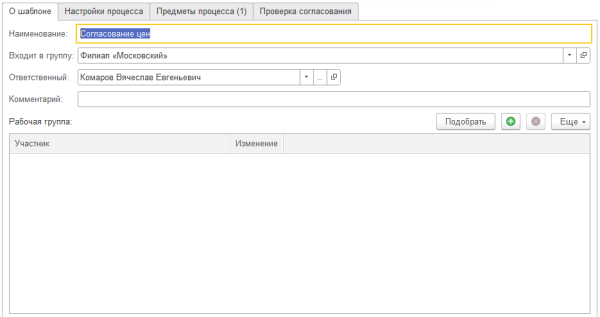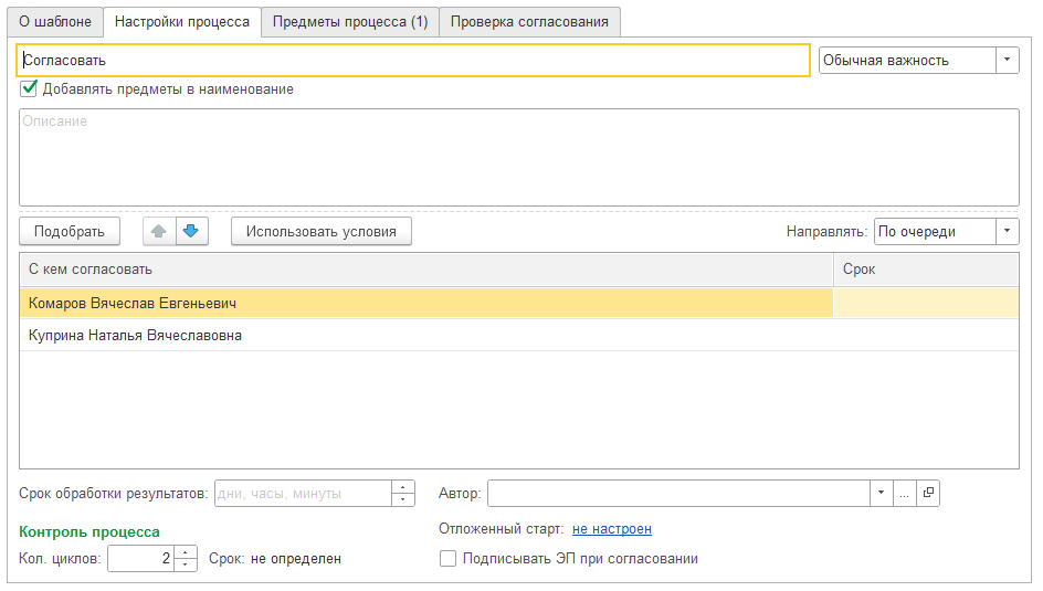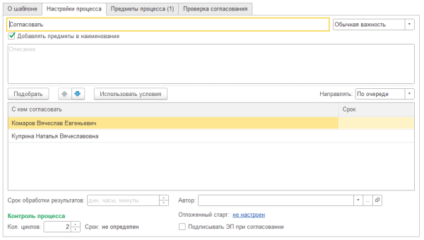 Для согласования добавить шаблон процесса: Совместная работа - Шаблоны процессов
