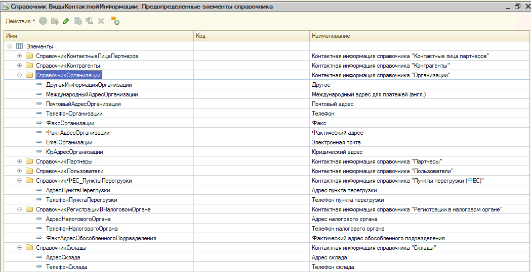 Создание в справочнике ВидыКонтактнойИнформации предопределенных элементов