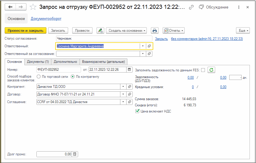 - Заключительным этапом согласования является получение одобрения от кредитного контролера.